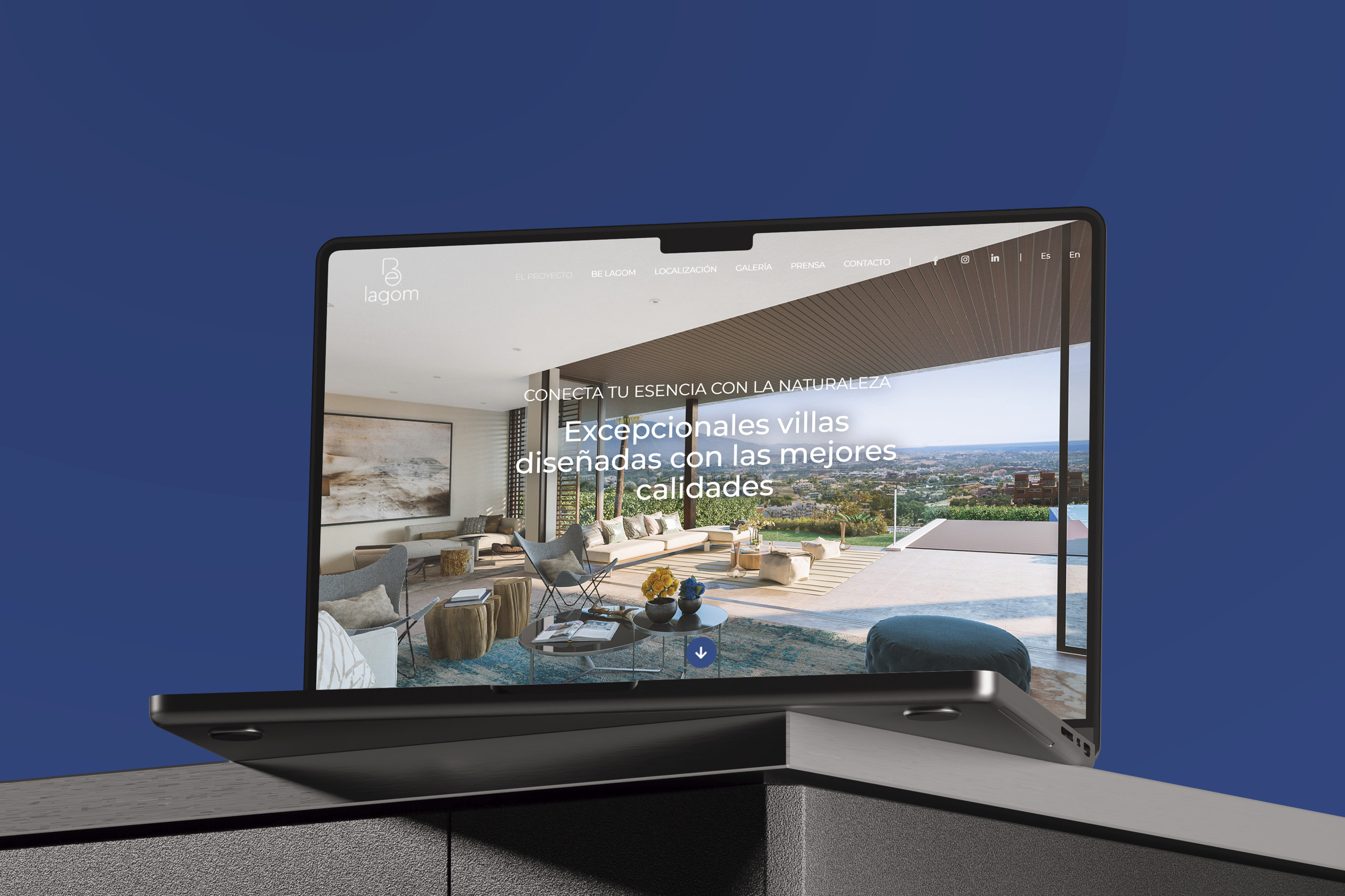 La web de Be Lagom combina un diseño elegante y minimalista con una navegación clara e intuitiva, mostrando las villas y su entorno de manera atractiva y aspiracional. Su contenido comunica con coherencia los valores del proyecto —equilibrio, sostenibilidad y exclusividad— mientras destaca certificaciones ecológicas y materiales responsables. La integración de imágenes, videos y llamadas a la acción estratégicas facilita la experiencia del usuario y la conversión de visitantes en clientes. Además, su diseño responsivo y optimización SEO aseguran visibilidad y accesibilidad en todos los dispositivos, reforzando la marca y su propuesta de valor en el mercado inmobiliario de lujo.