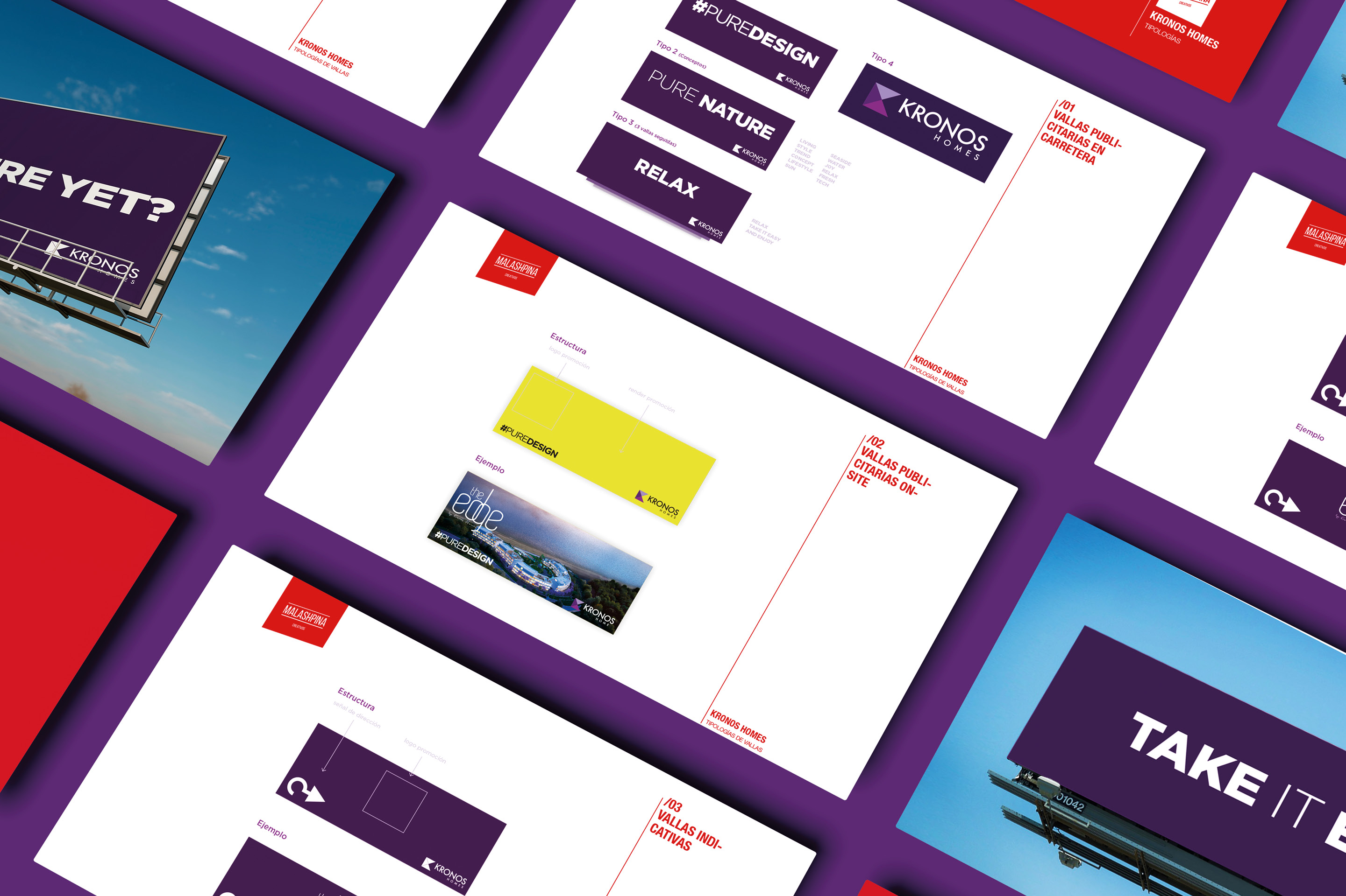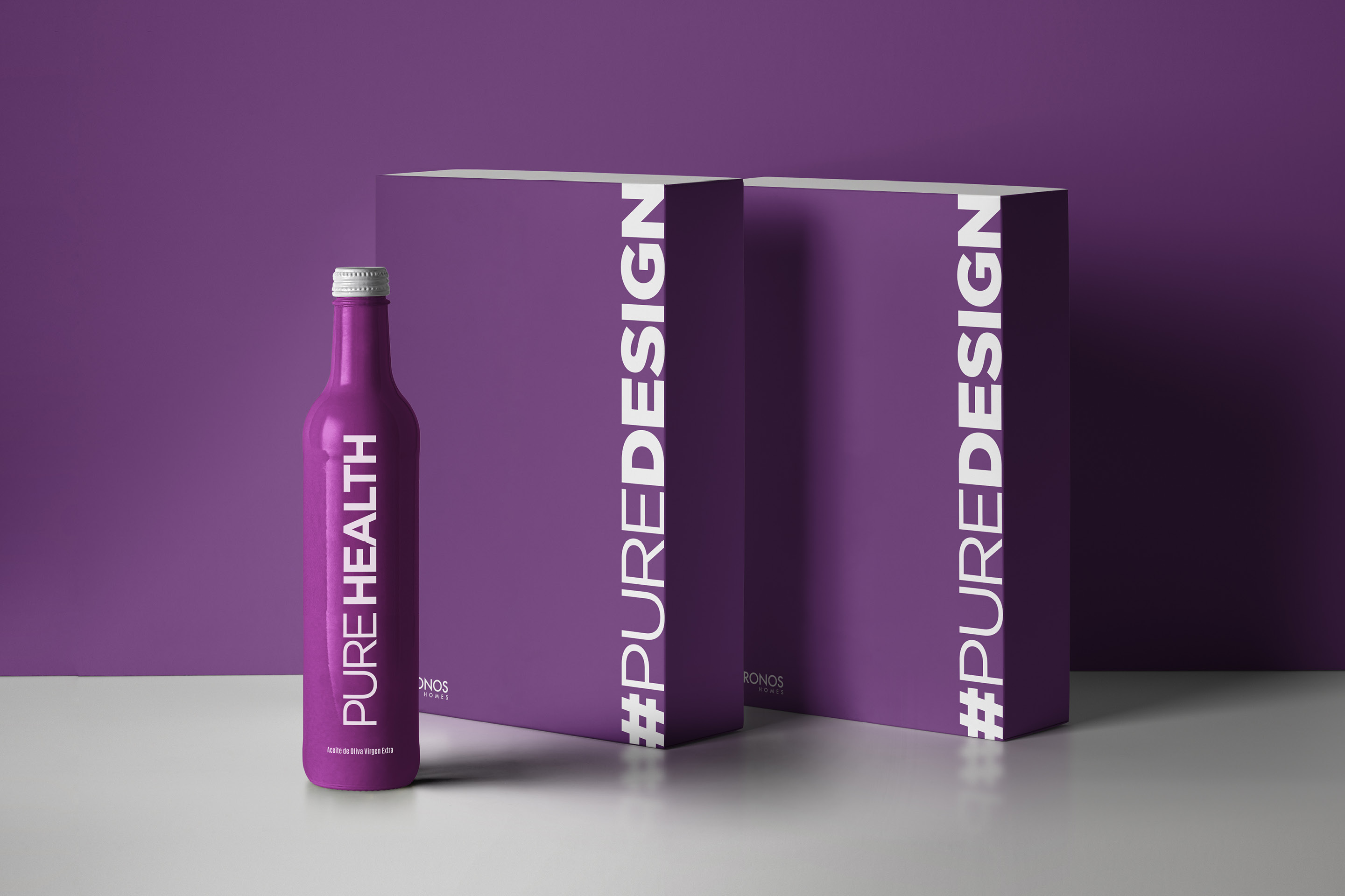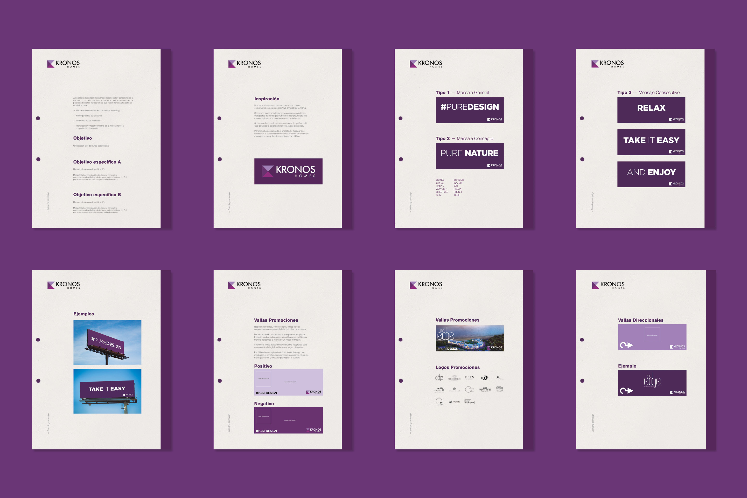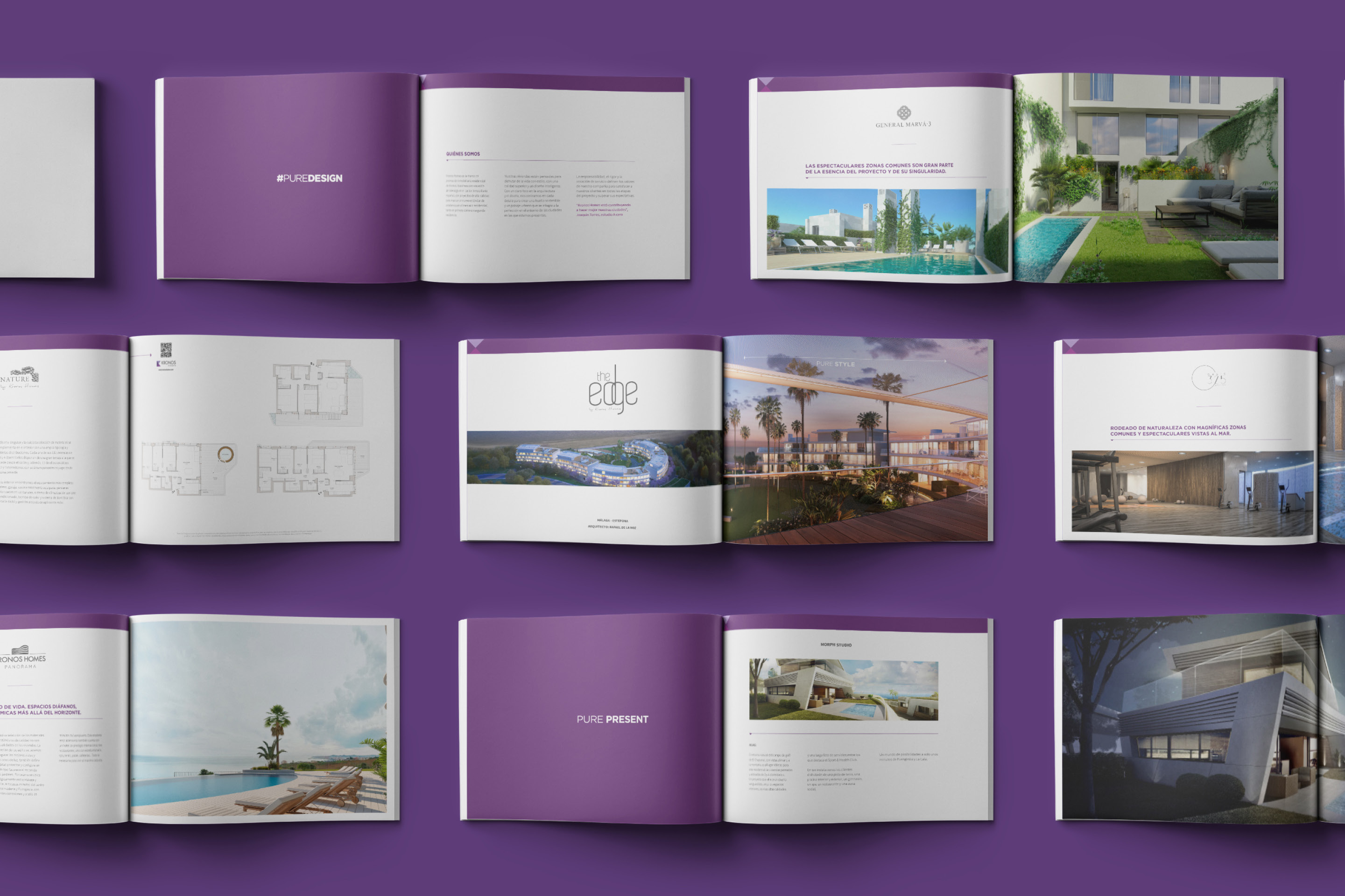 #PUREDESIGN nos ofrecía una gama interminable de aplicaciones dependiendo de las necesidades de cada proyecto de KRONOS HOMES. Desde Pure Golf, hasta Pure Sea, pasando por Pure Views, el nuevo claim se adapta perfectamente a cada aspecto. Lo hemos aplicado a catálogos, packaging, stands, etc.
