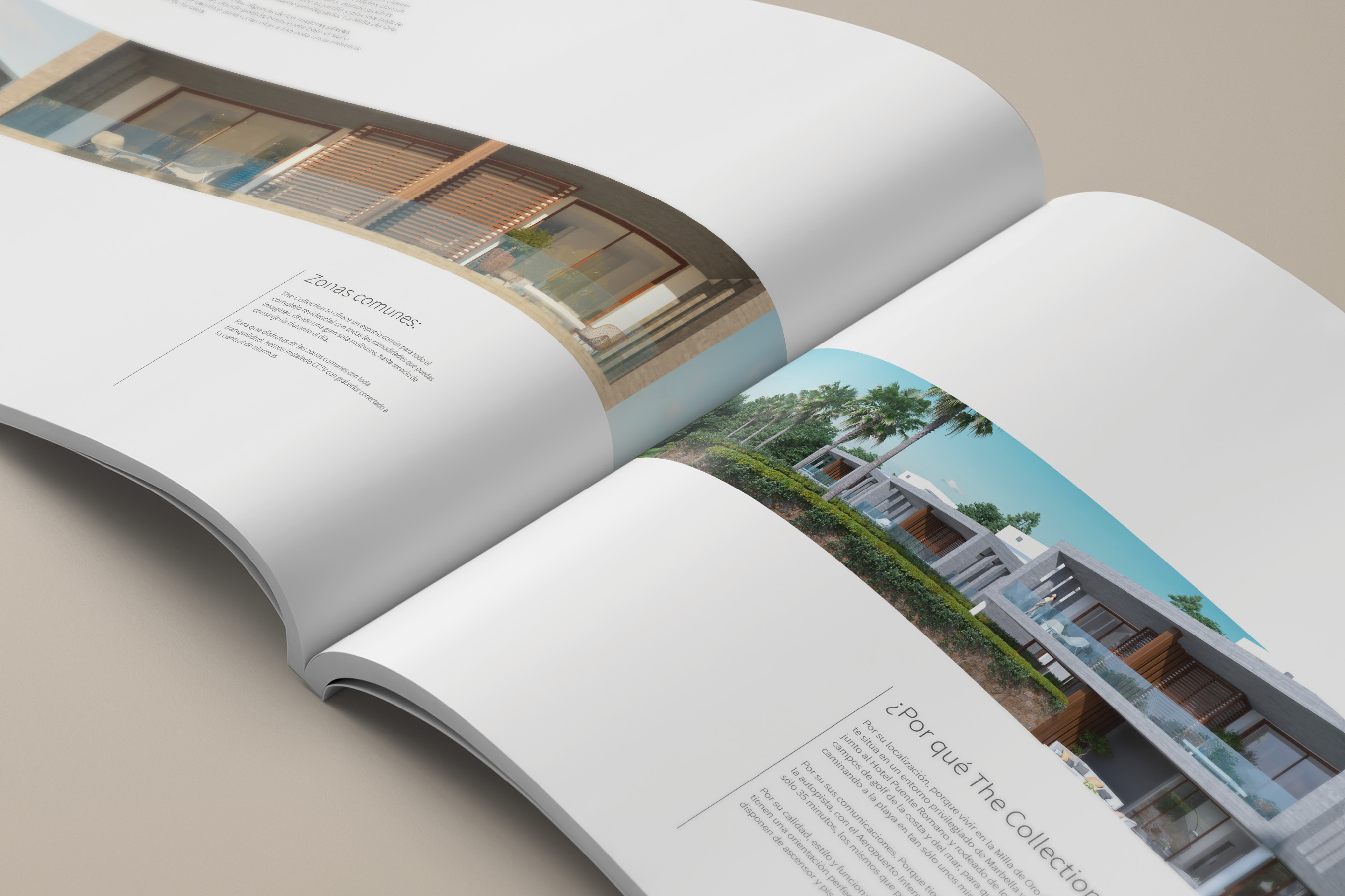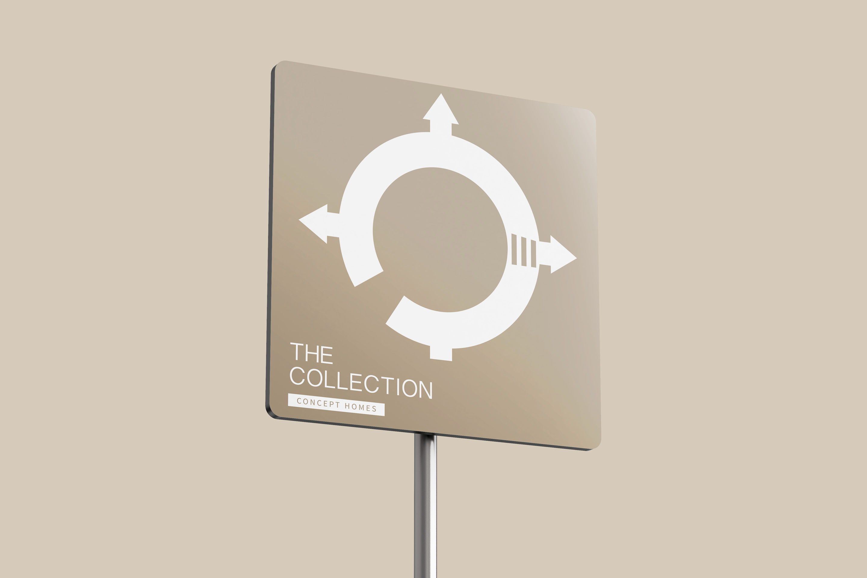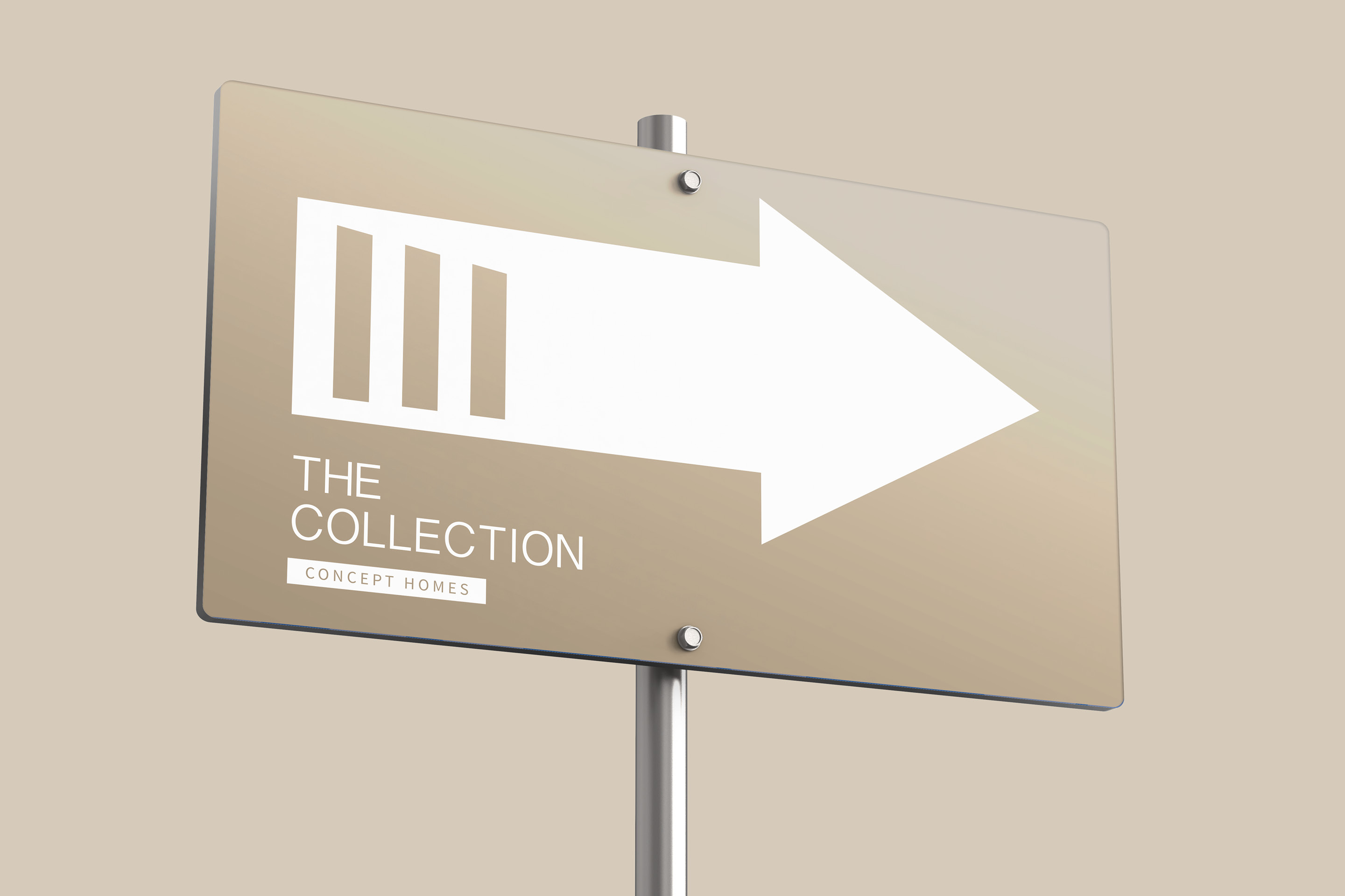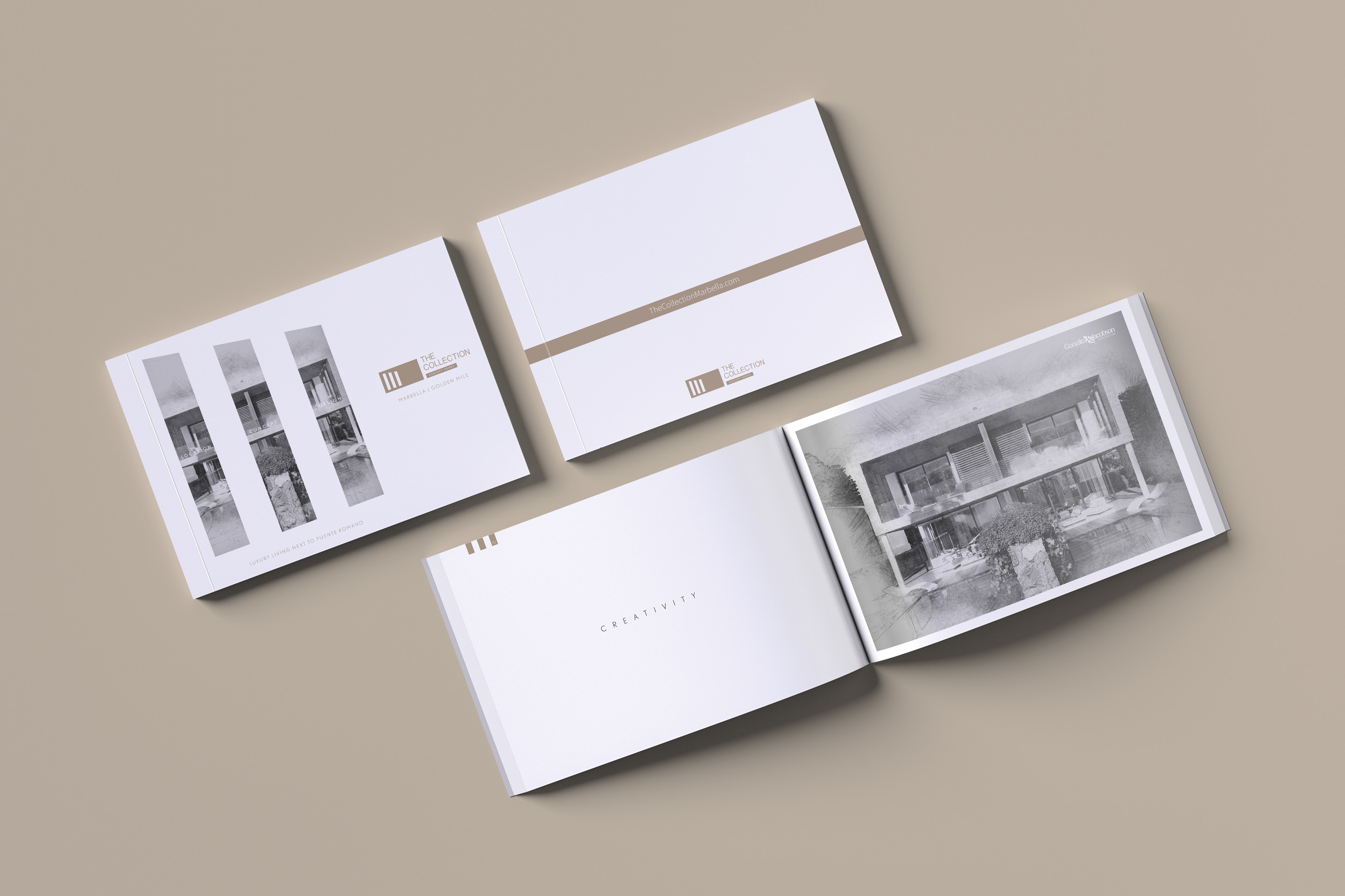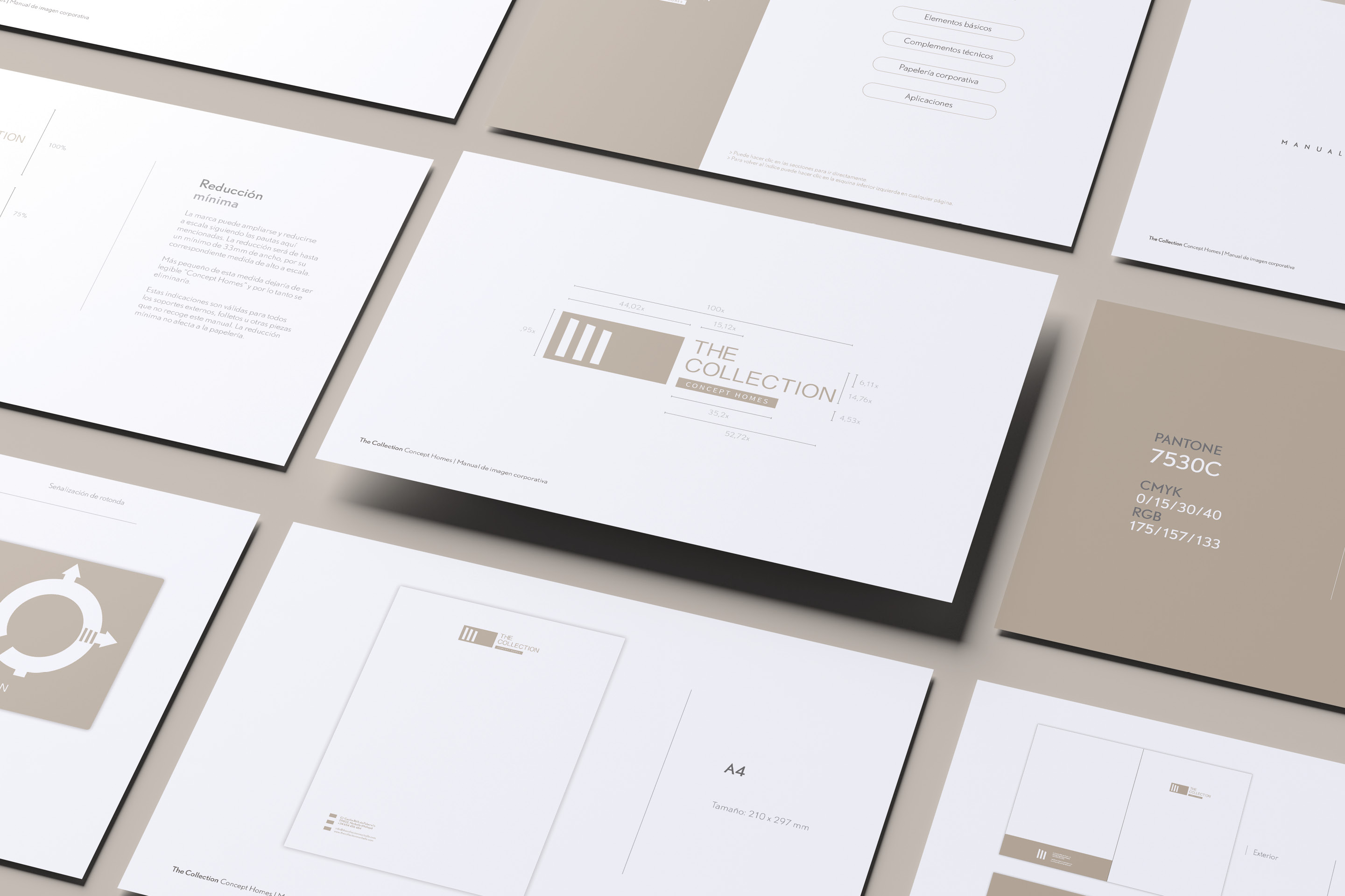El nombre The Collection refleja la idea de una selección cuidada y exclusiva de villas, como si cada una fuera una pieza única dentro de una colección de lujo. El logotipo se inspira directamente en la arquitectura del proyecto. Su forma refleja las líneas laterales de las villas. Esta abstracción convierte la estructura física en un icono visual muy reconocible.