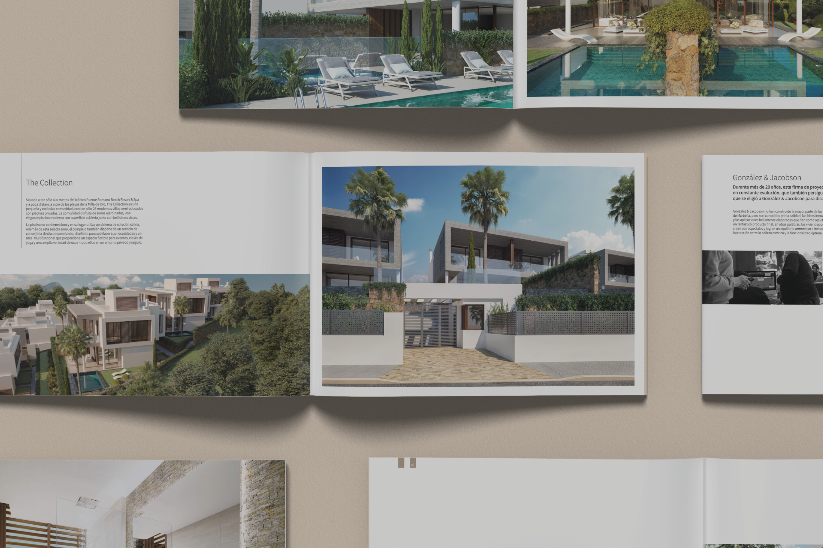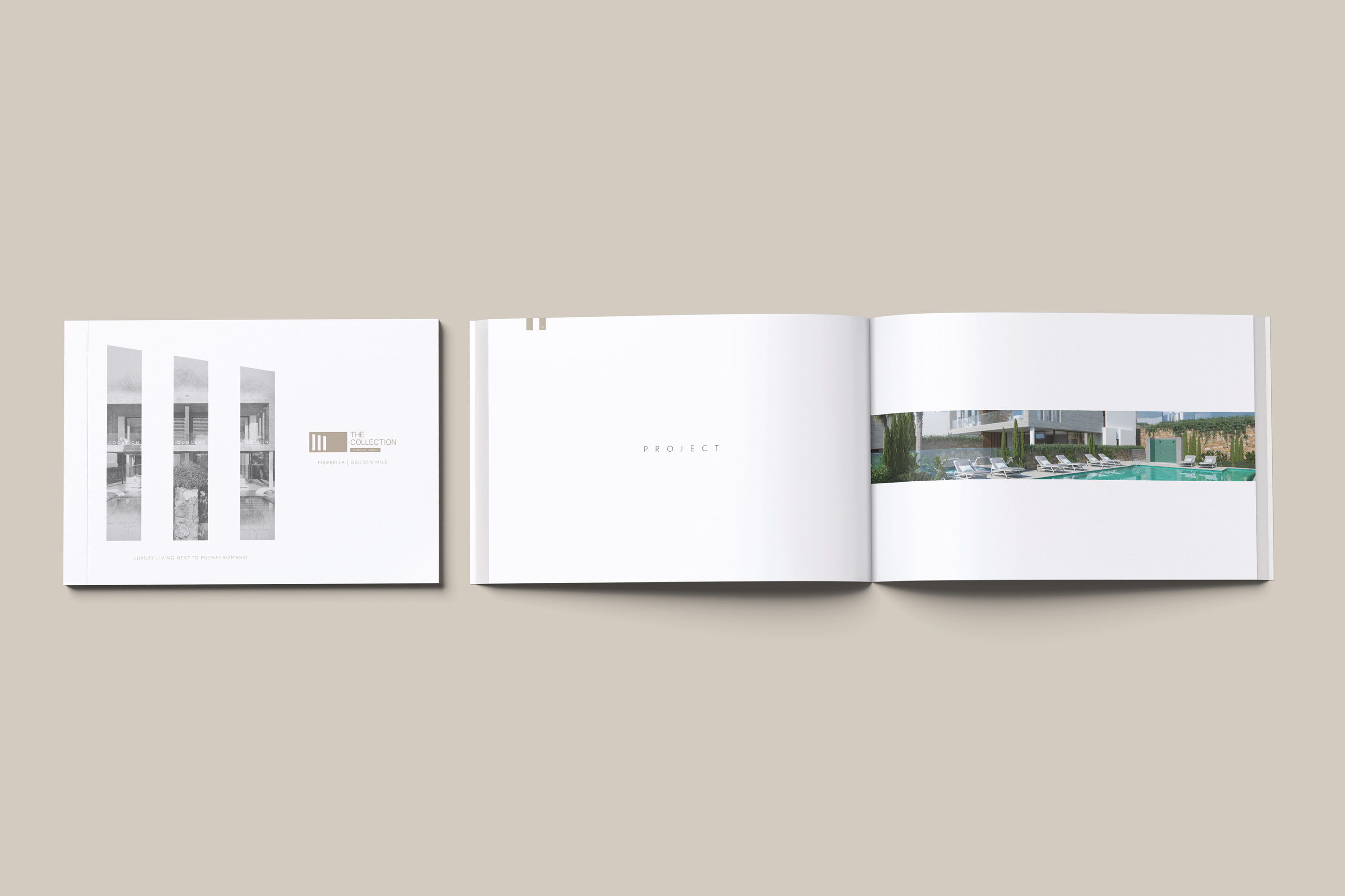 Para The Collection, la estrategia se centró en resaltar la exclusividad y el valor diferenciado de cada villa. Partimos del análisis del entorno: proximidad a Puente Romano y las vistas panorámicas al mar y la montaña. Se diseñó un lenguaje gráfico coherente que unifica materiales impresos, digitales y espacios físicos. Cada soporte refuerza la identidad de marca y crea una experiencia única, transmitiendo la calidad, el diseño y la atención al detalle que caracterizan a The Collection.
