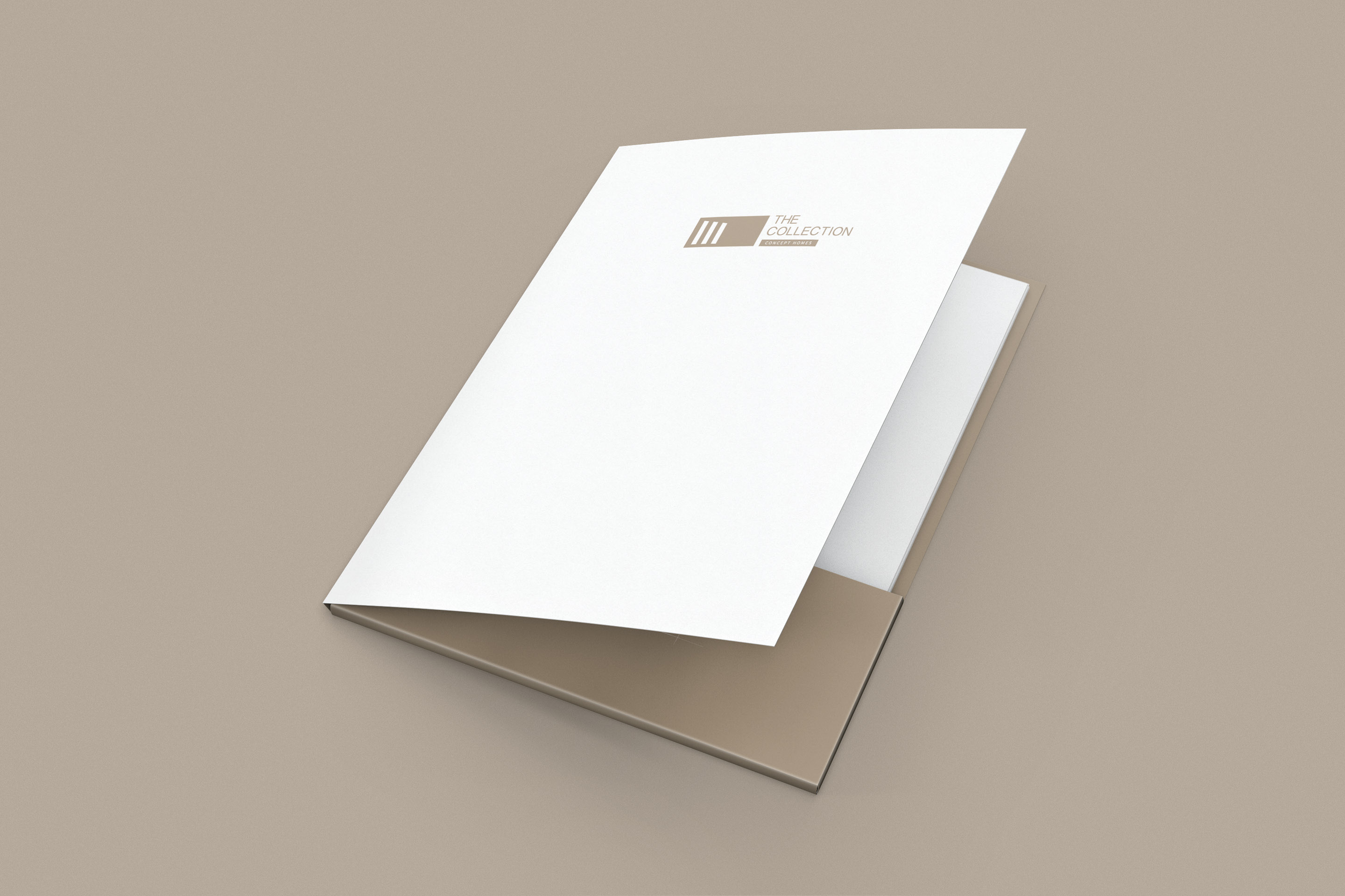 La identidad de The Collection se despliega de manera coherente y estratégica en todos los soportes: prensa, banderolas, lista de precios, papelería, planos, señalética, vallas.. Cada aplicación refuerza la exclusividad del proyecto y asegura que la experiencia de marca transmita lujo, estilo y cohesión en todos los puntos de contacto.