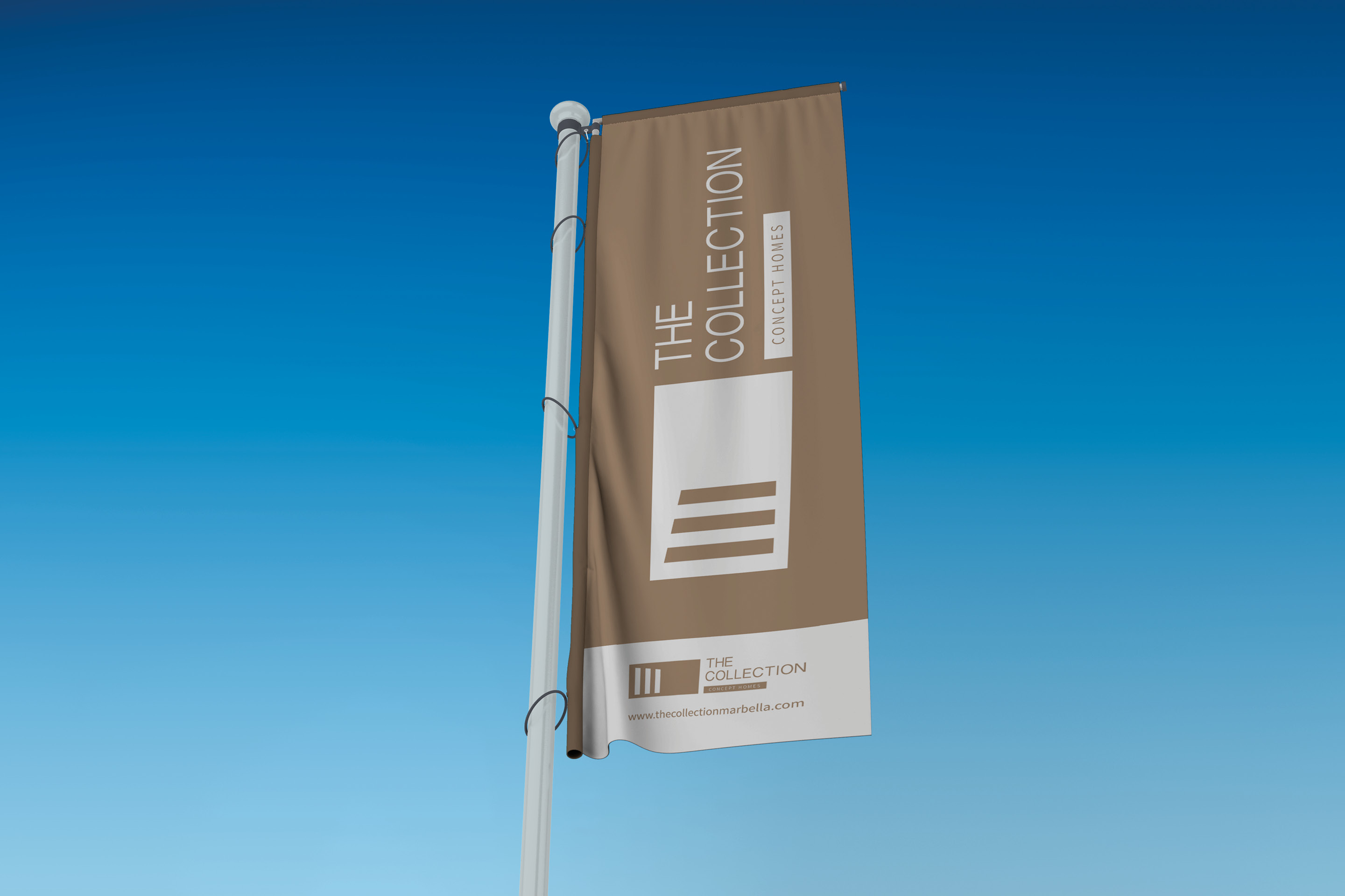 Como parte de la estrategia de comunicación integral de The Collection, se diseñó una señalética completa para guiar a los visitantes de manera intuitiva y coherente por todo el proyecto. Cada elemento —banderolas, señalización de la oficina de ventas, la parcela y las vallas— se pensó estratégicamente para maximizar la visibilidad y facilitar la experiencia.