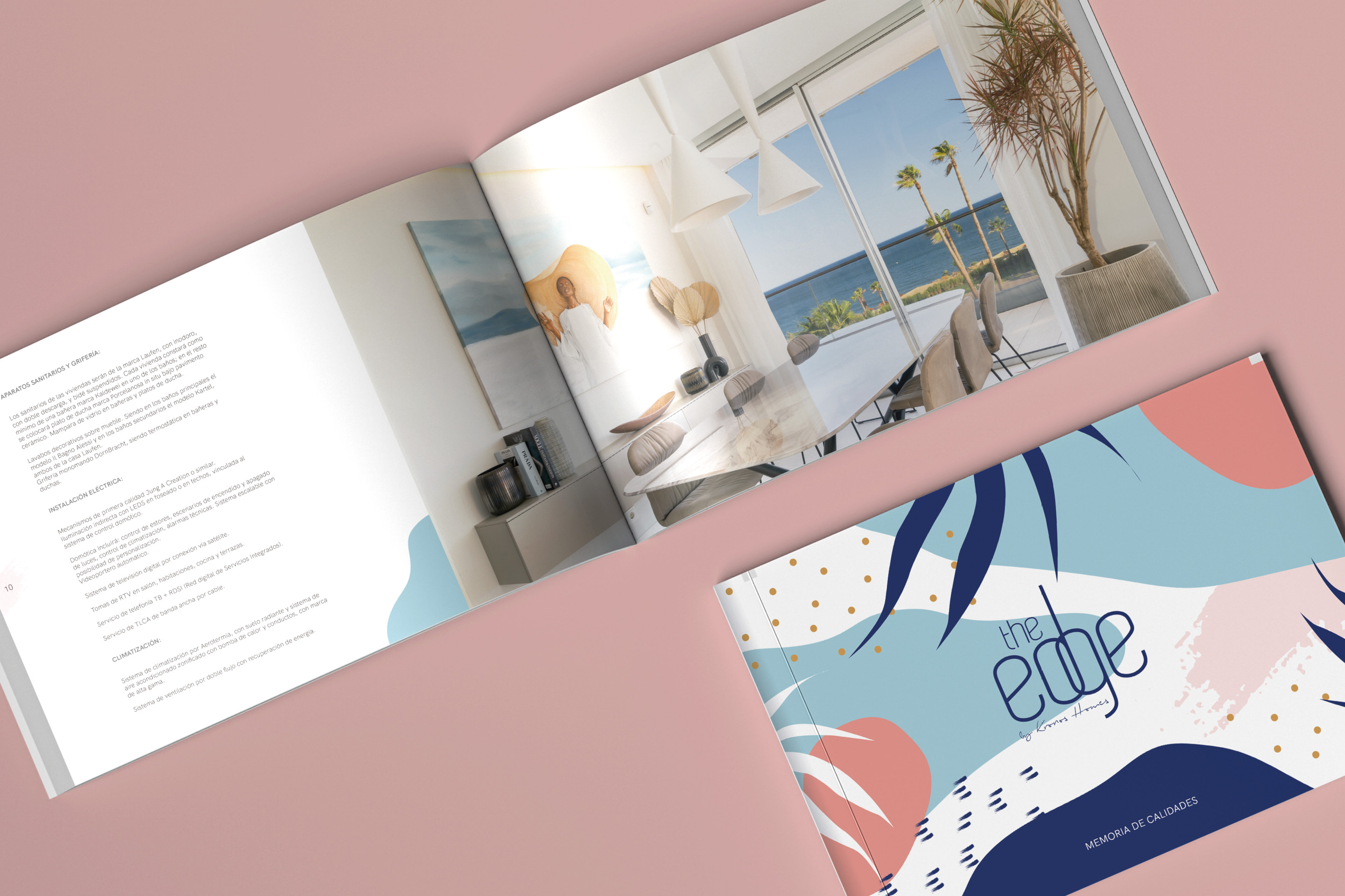 Los materiales corporativos se concibieron como auténticos objetos de diseño, combinando una paleta cromática en tonos pastel, ilustraciones y acabados de máxima calidad. Se aplicó de manera coherente en todos los soportes, incluyendo brochures, memorias de calidades, libros de planos, folletos corporativos, cajas portadocumentos...