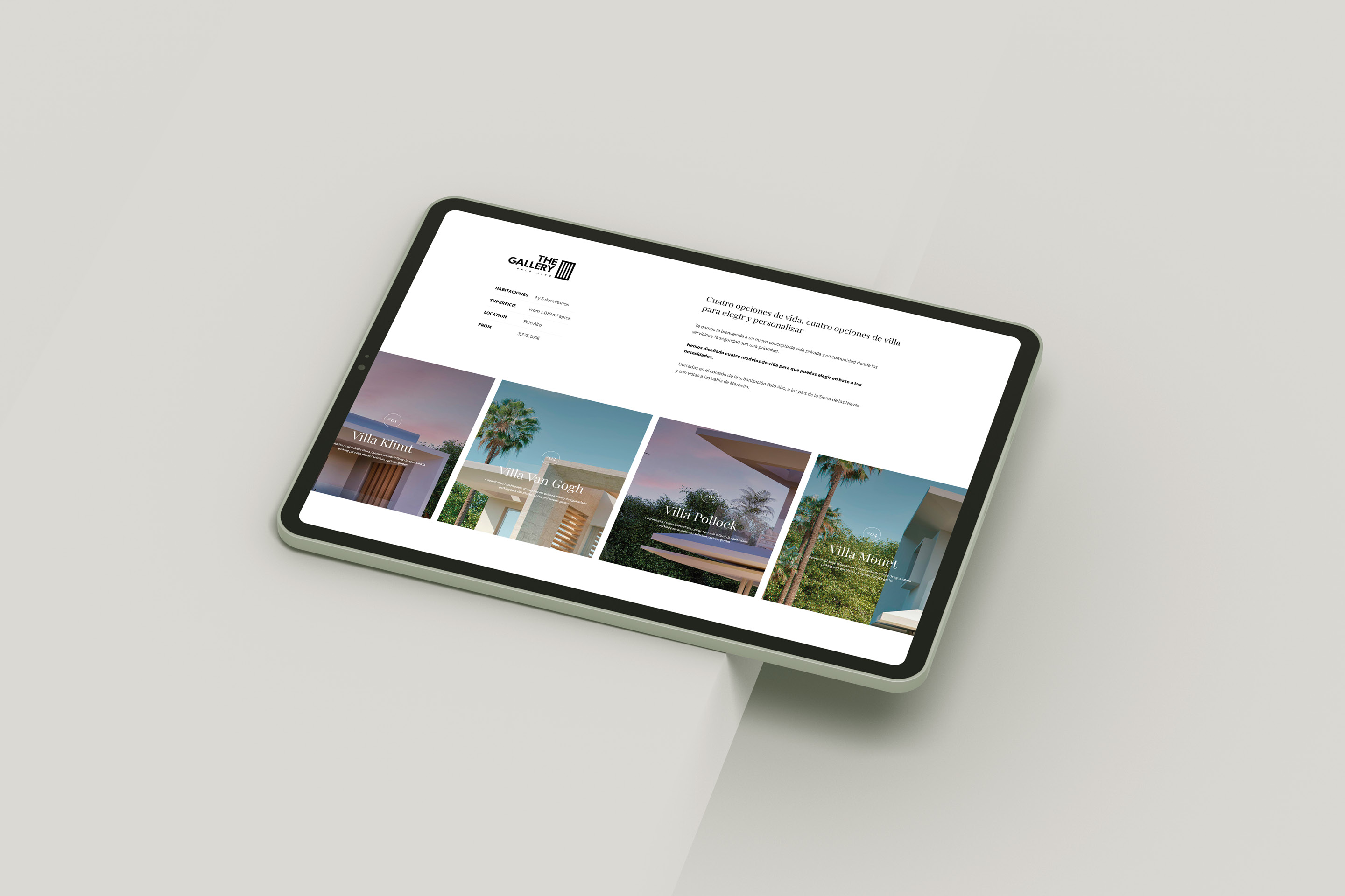 En Palo Alto Marbella se ubica “The Gallery”, un proyecto único compuesto por 33 exclusivas villas en plena Costa del Sol. El reto era crear un material de ventas que reflejara con precisión la categoría del proyecto: transmitir calidad, diseño y exclusividad, y al mismo tiempo generar una huella memorable en los potenciales clientes.